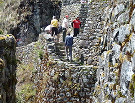 We get up at 6.30am and after a rich and substantial breakfast we will start the walk towards the third pass (3650 masl). The next stop is the Phuyupatamarca archeological complex where there is an excellent view over the Urubamba Valley. Finally we reach the final camp on the Inca Trail at Wiñayhuayna (2650 masl) which is a very beautiful Inca archeological complex. In Wiñayhuayna we take shelter and hikers usually celebrate their last night of the Inca Trail. Here it is also posible to take a hot shower.